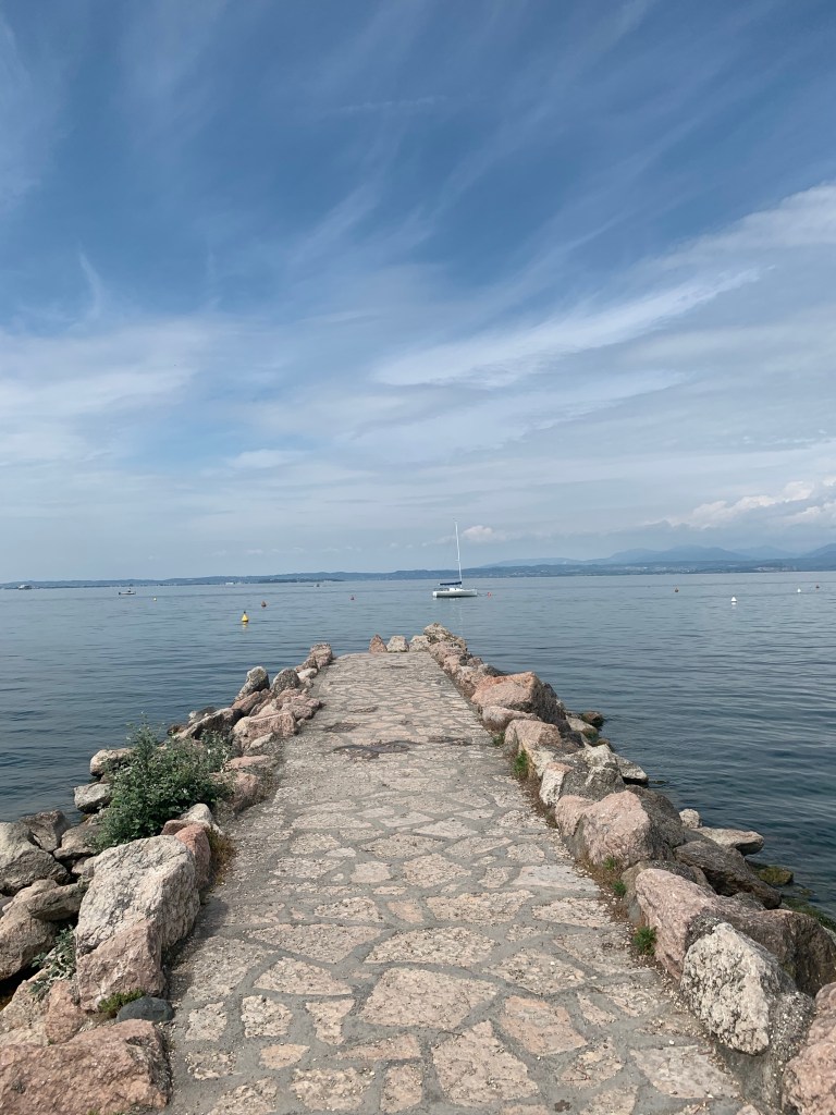Avslutar kvällen med cappuccino och glasskula vid strandkanten.