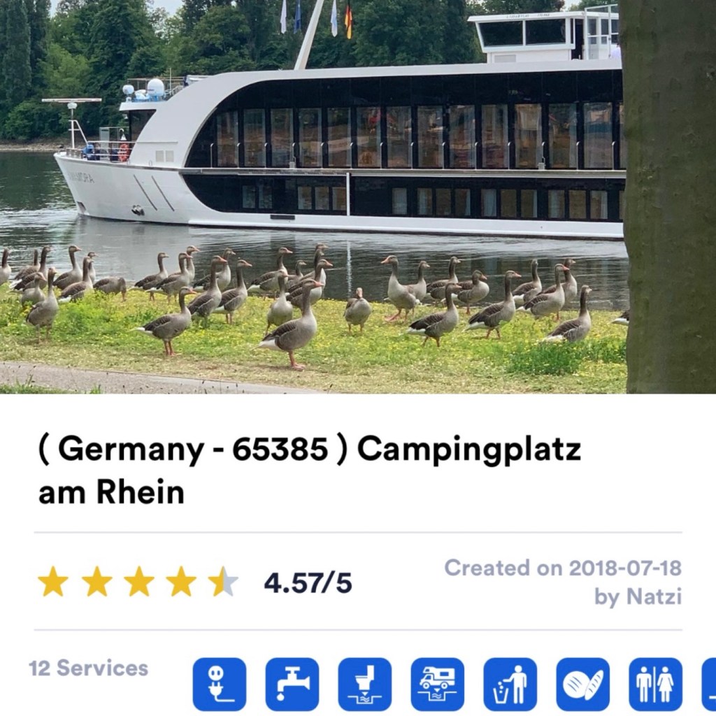 Man kör igenom staden för å komma till campingen som ligger ca 1 km från stan. Vi anländer strax efter 13, å då har d lunchstängt till 13.30. Jag å G tar en vända runt campingen, finns några Rheinblick platser kvar så hoppas vi får en sån