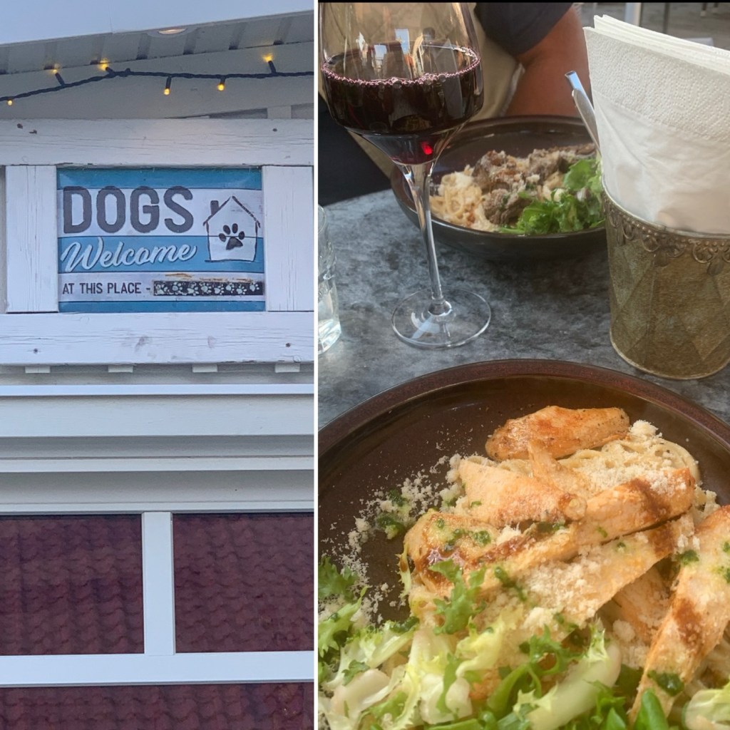 Bokat bord på Klova Hamnkrog som till och med skyltade om att hundar var välkomna. Vi valde båda pasta, jag med kyckling och H med oxfilé