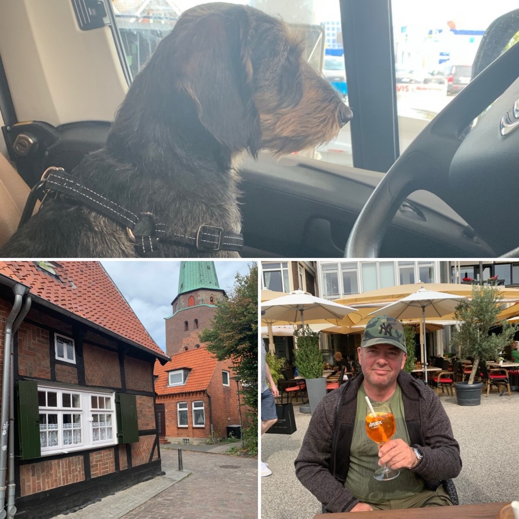 Mål för dagen Travemünde, där vi inte varit tidigare. Framme där strax efter 10. Käkar frukost utanför bilen. Inte direkt mysigt men nära till stan. Efter frukost, disk å lite fix , promenad dit.