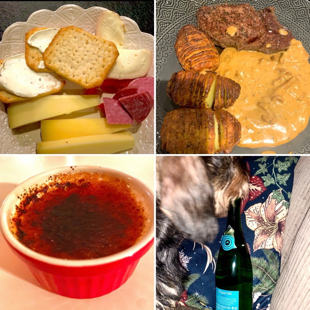 DÀrefter Àlg entrecote Ä hasselbackspotatis med svampsÄs. SvÄrt att fÄ nyÄrsfeeling, men försöker