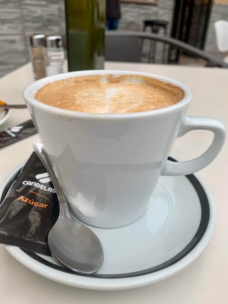 Sen mot Neja, får en helt ok plats, åå så nära till allt. 100 meter från plåten stannar vi för vätskekontroll, inklusive tapas 7,2 € (vin var billigare än öl)