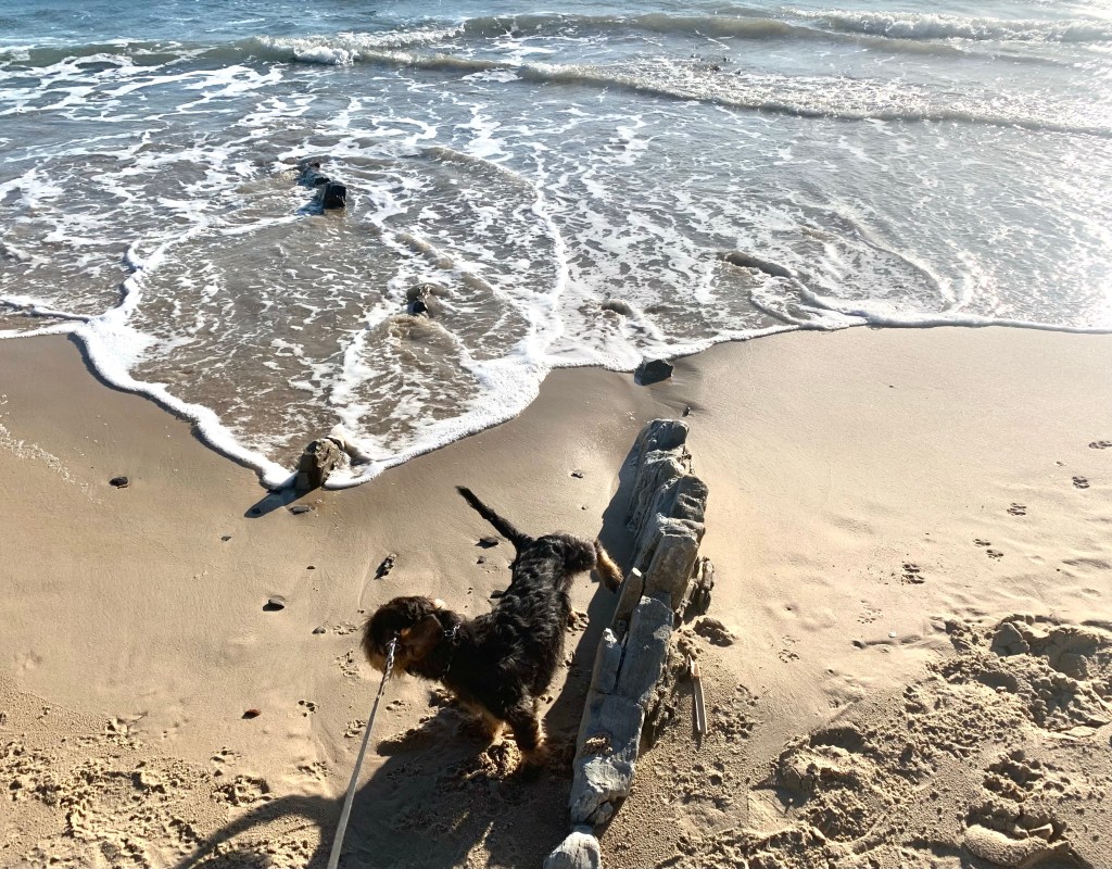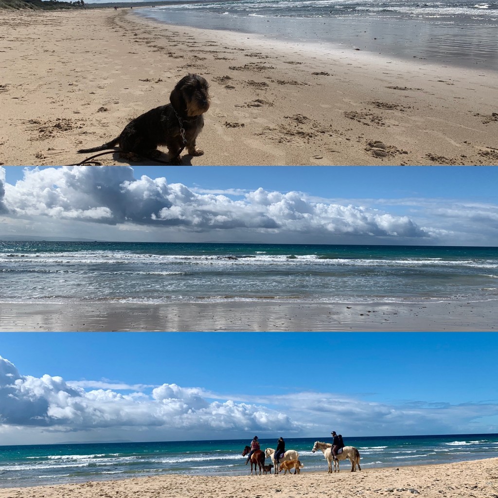 Är så rofyllt att lyssna på havet, se på surfare, joggare och hästar på stranden.