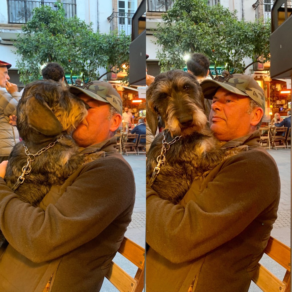 Är rätt kallt så vill helst sitta inne, vilket inte går med hund. Hittar till slut ett ledigt bord med infravärmare.