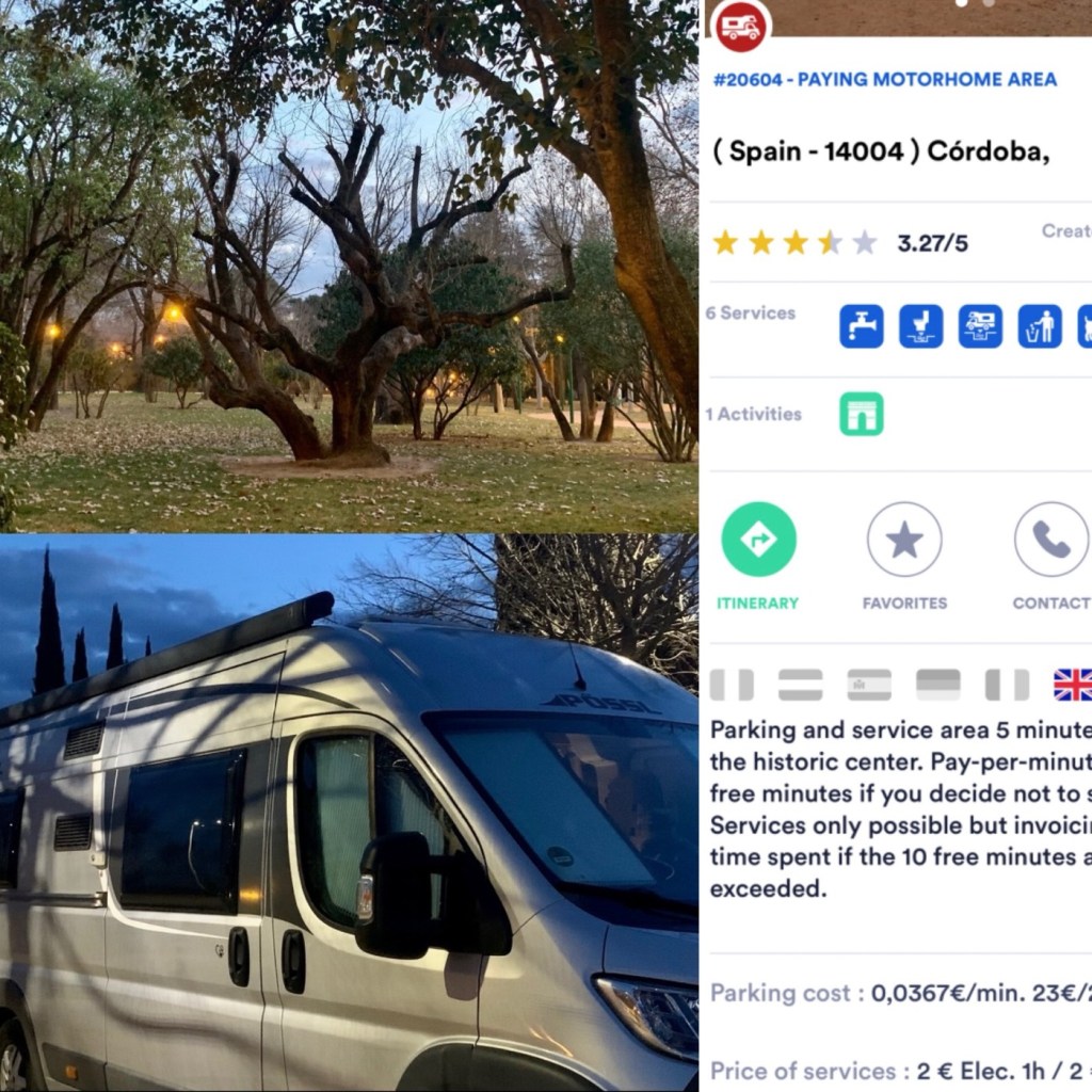 Målet i dag är Córdoba, men bevakad parkering för husbilar.
