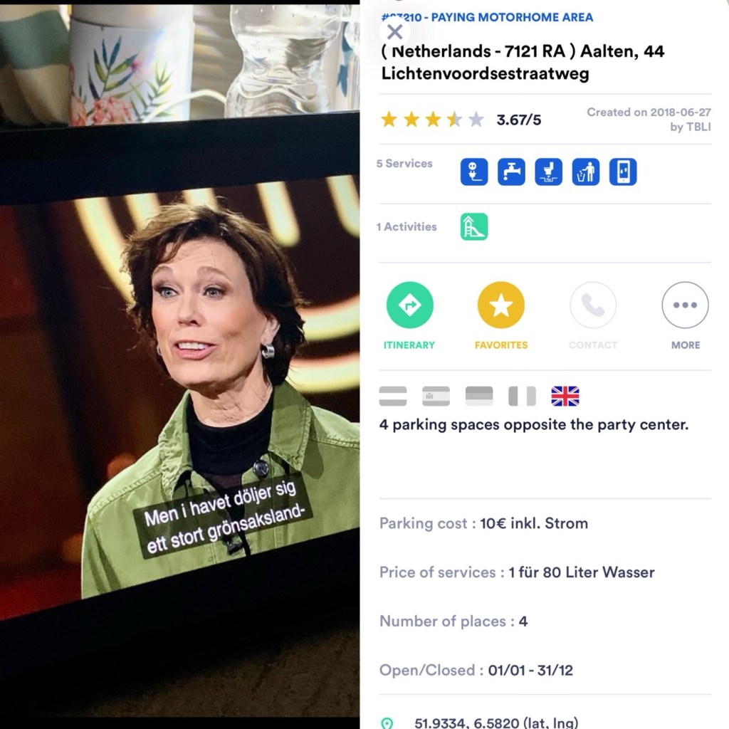 Hade tänkt oss Kaukenhof som öppnar i morgon, men tulpanerna har ännu ej slagit ut så känns väl så där. Som sagt regnar i dag, sånt där regn där man tror att d aldrig ska sluta. Dagen mål blir därför d stora campingvaruhuset Obelink. Framme vid Winterswijk så orkar vi dock inte ta oss ann d idag så väljer att ta en ställplats nån mil där ifrån. Regnet har slutat men d är allt annat än fint väder.