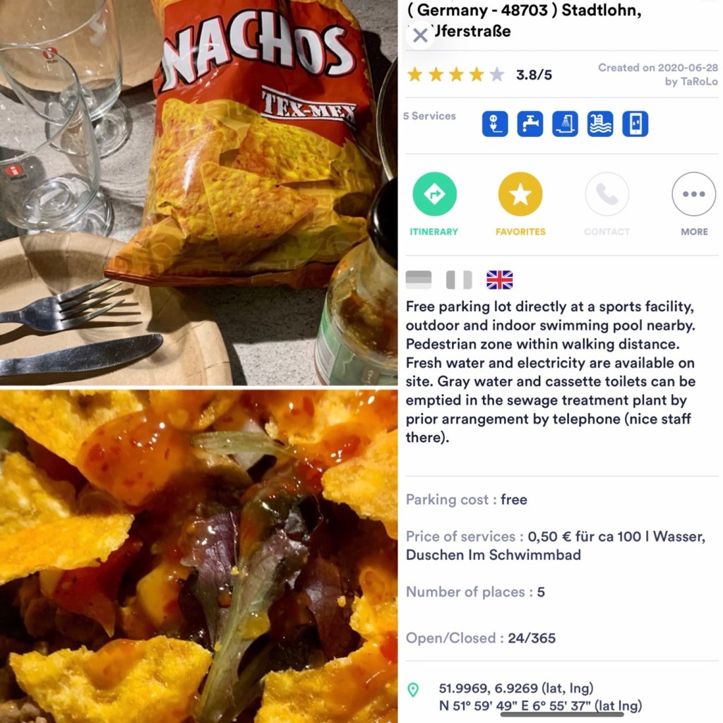 Blir dÀrför en snabb koll i apparna efter en gratisparkering inte alltför lÄngt bort. Hamnar dÀrmed Äter i Tyskland. Kör middag hemma.