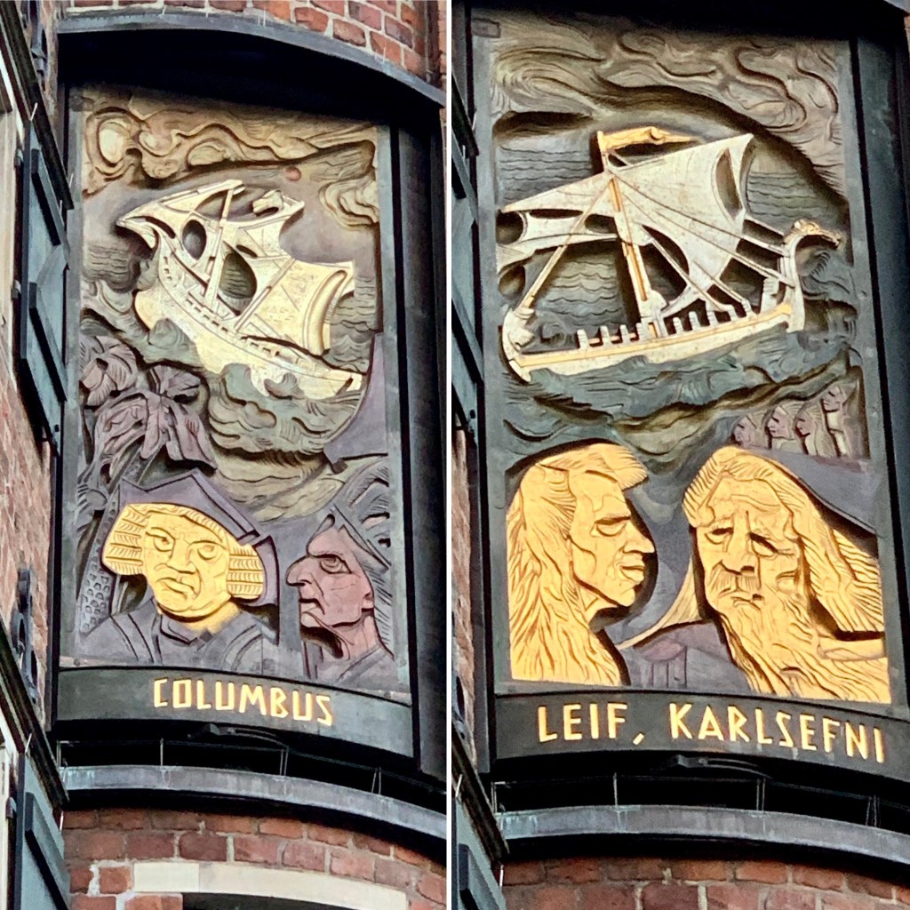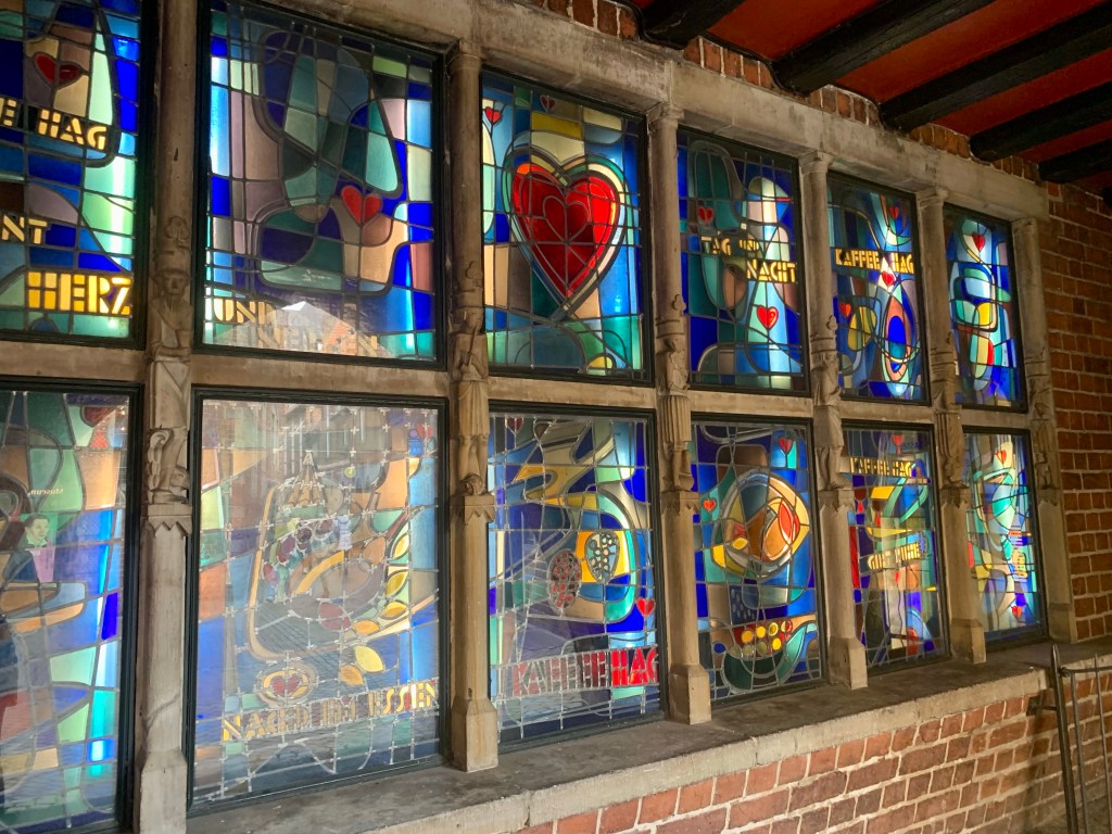 Vid 18 skulle klockspelet (Glockenspiel) dra i gång vid Böttcherstrasse, så då tog vi oss dit igen. En bild i väggen roterade under spelandet med olika bilder.
