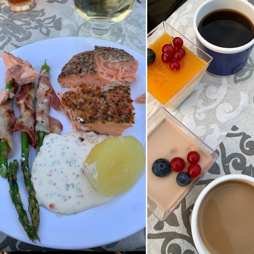 Sitter ute å njuter av vädret hela dan, helt underbart. Middag i dag blir varmrökt lax från Laxbutiken.