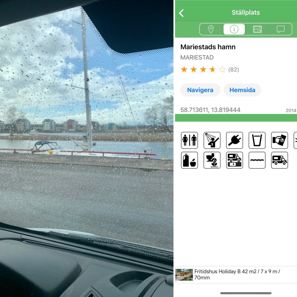 Var i dag uppe före H, är nog första gången någonsin i plåten. Båda är vi rätt krassliga… I dag styr vi mot Mariestad. Får en plats med sjöutsikt, 190:- utan el.