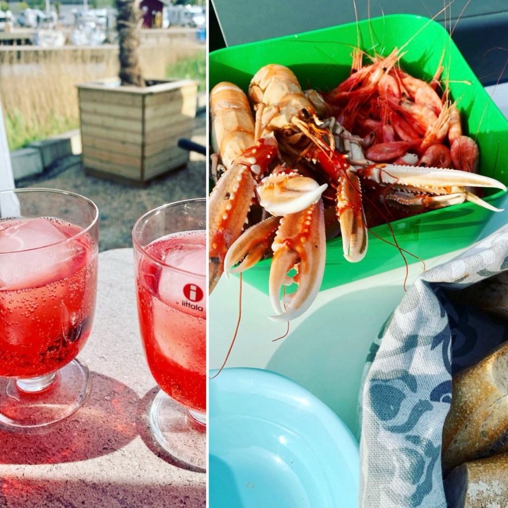 H anländer strax innan 17 med skaldjur som blir kvällens middag