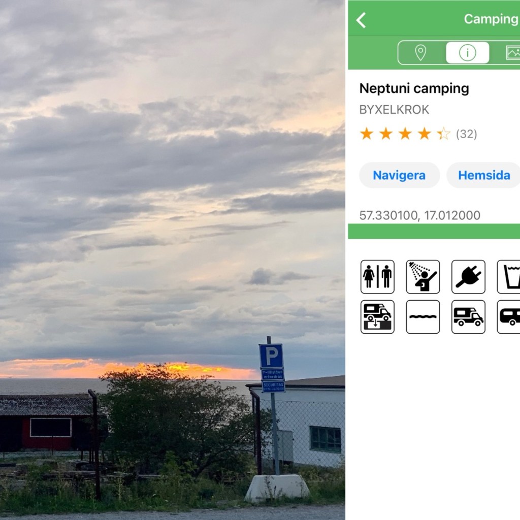 Alla dagens stopp blev riktigt lyckade, hade planerat fler men d är riktigt fint väder så vill hellre dra handbromsen. Styr mot Byxelkrok, fanns plats på ställplatsen men den var ju bara för omysig, kostade 230:- ringde bort till campingen och d tog 220:- valet blev lätt. Här stod vi på gräs i stället för grusplan