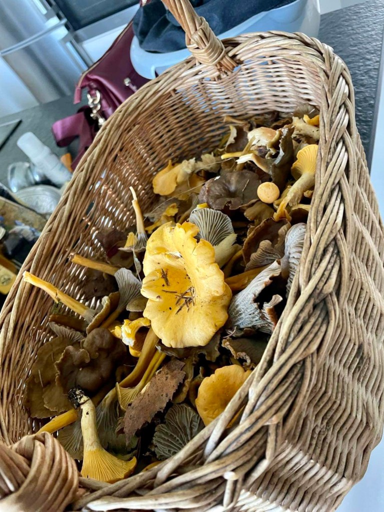 Rätt exalterade kör vi ändå vidare till skogen. Där vi i alla fall hittade en hel del trattkantareller. Sedan landade vi på vår altan med lite rödvin som sällskap. Hällen är helt super att förvälla svamp i 👍