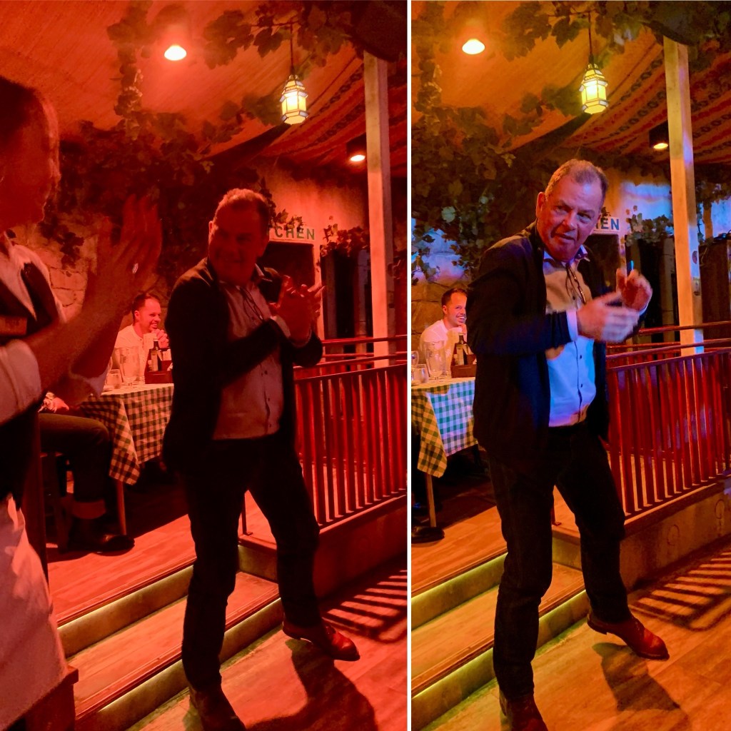 Han ville dock inte följa med ner till dansgolvet vid finalen, men jag släpade med mig vår 80 åriga bordsgranne
