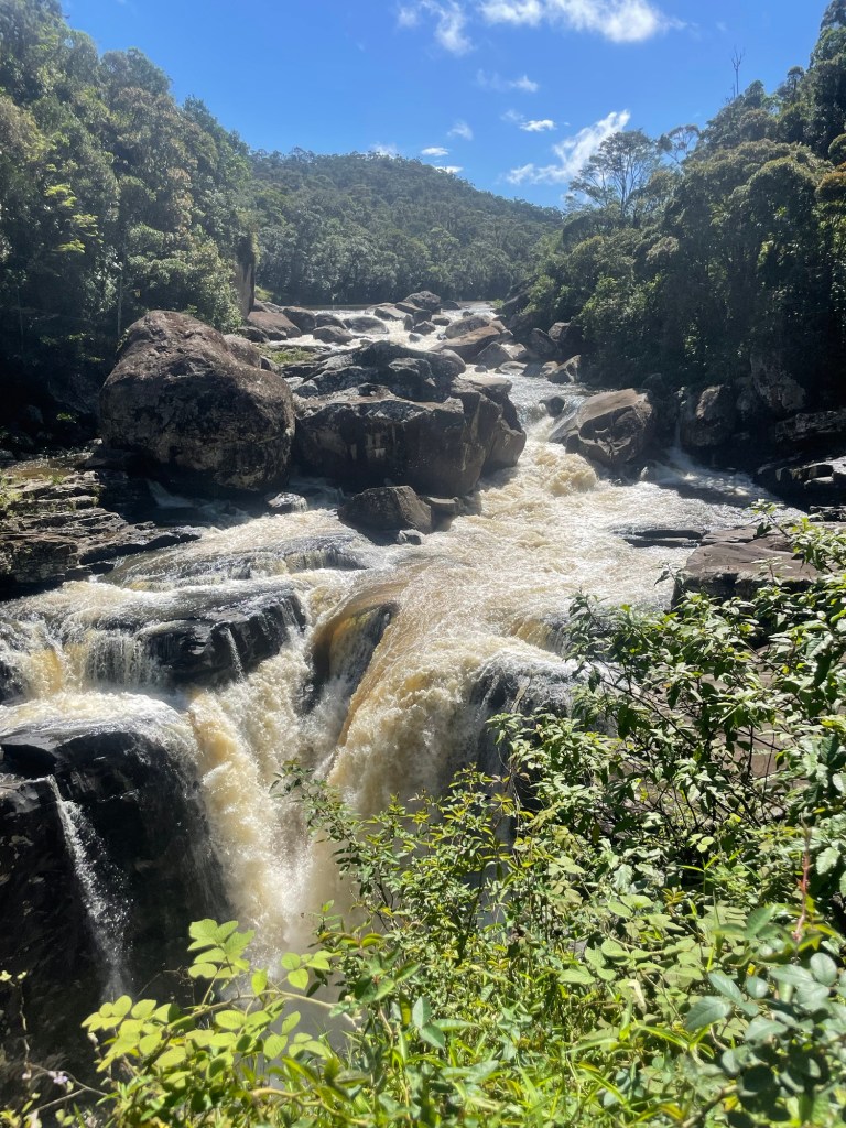 På färden söderut får vi till stopp för att kolla in vattenfallet.