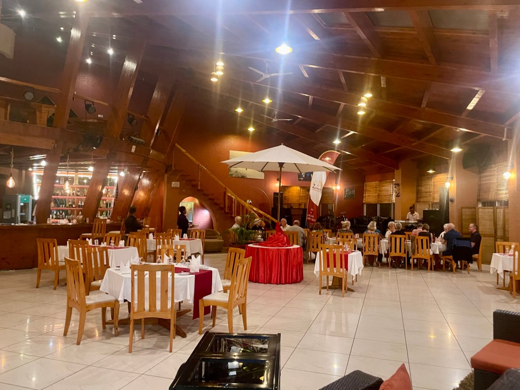 Middagen kör vi hotellets restaurang, då vi båda är rejält medtagna.