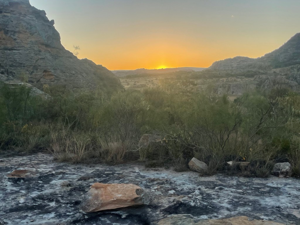Stannar kort till i Ranohira å snackar lite med vår guide för morgondagens äventyr.