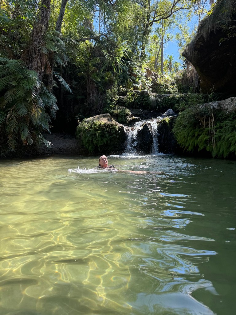 Efter dryga timmen gör vi nästa stopp, denna gången för en simtur i en natursjö med vattenfall och allt: Poscina Naturella. Helt fantastiskt idylliskt, i alla fall så här off season, då här kan vara drygt 100 personer här samtidigt under högsäsong.
