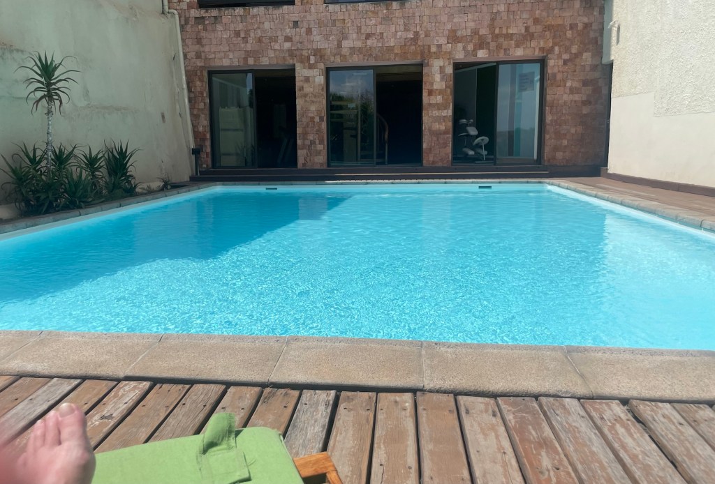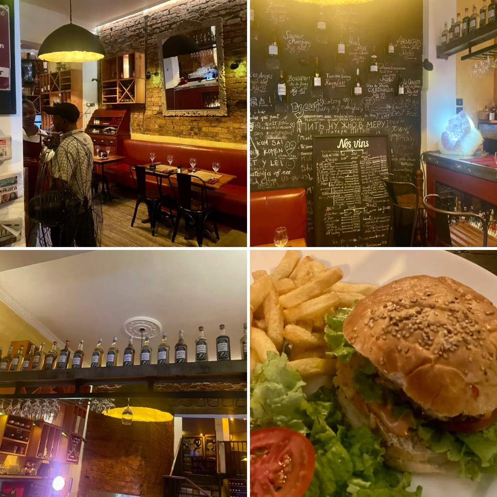 Hamnar sedan på en fransk restaurang: le petitte bistro, ett jättemysigt ställe, där vi valde ostburgare på zebu.