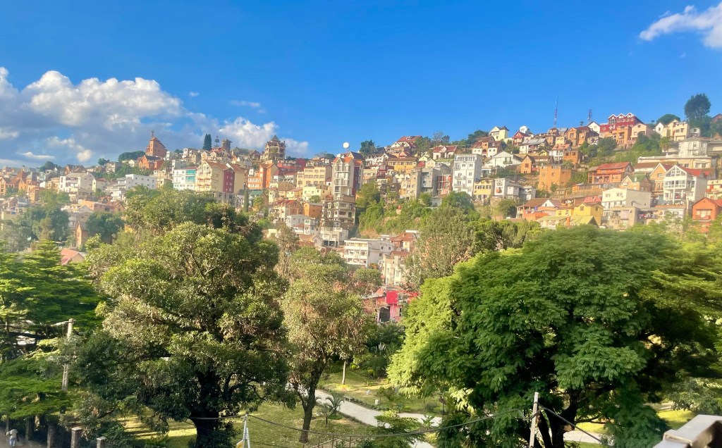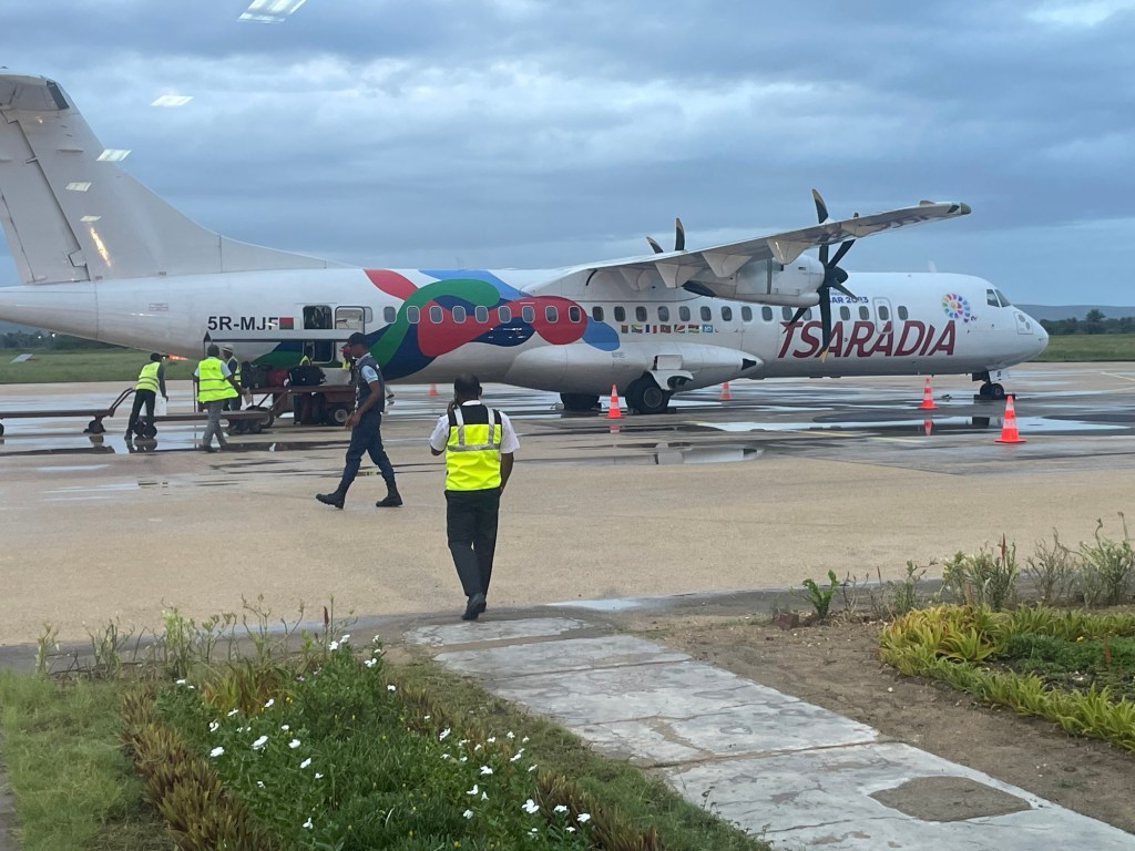 Allt gick bra genom incheckningen. och passkontroll. Blev en dyr snabbfrulle vid gaten. Var ett litet plan men inte så litet som jag fasat för, typ 75 passagerare. Strax under 90 minuter senare landar vi Antananarivos flygplats där F hämtar upp oss och kör oss till samma hotell här som tidigare.