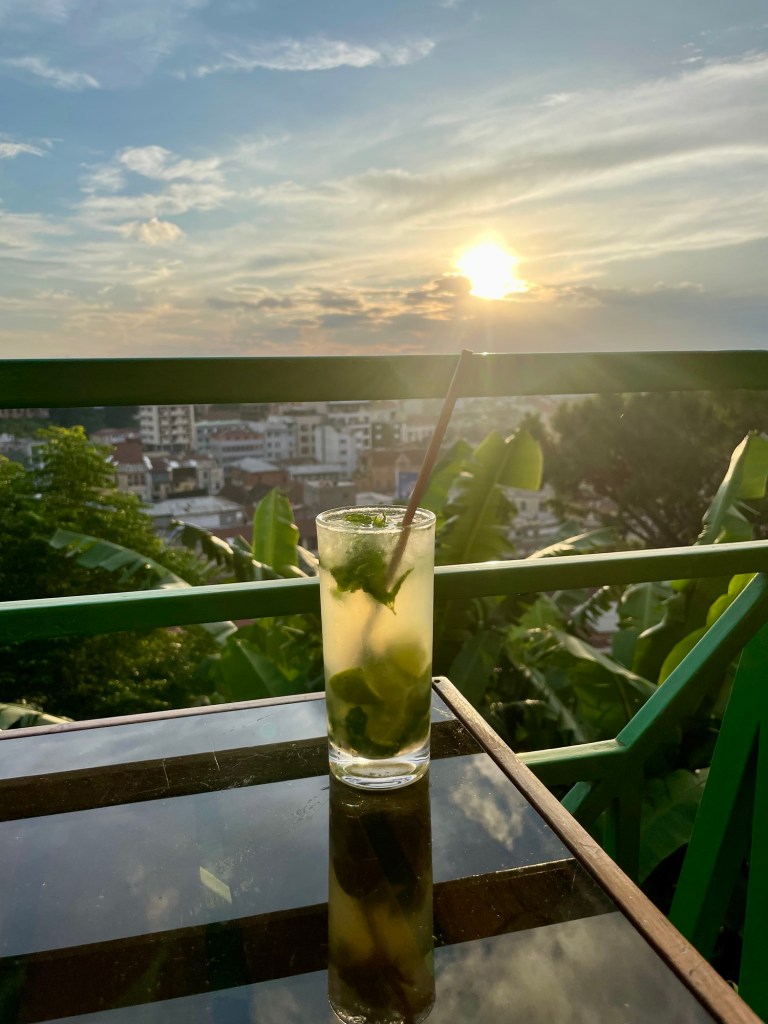 Blev sen ännu en tur ner till avenyn (10 min promenad) då vi ville ha nån tsha med hem. Sundownern blev på hotellet altan.