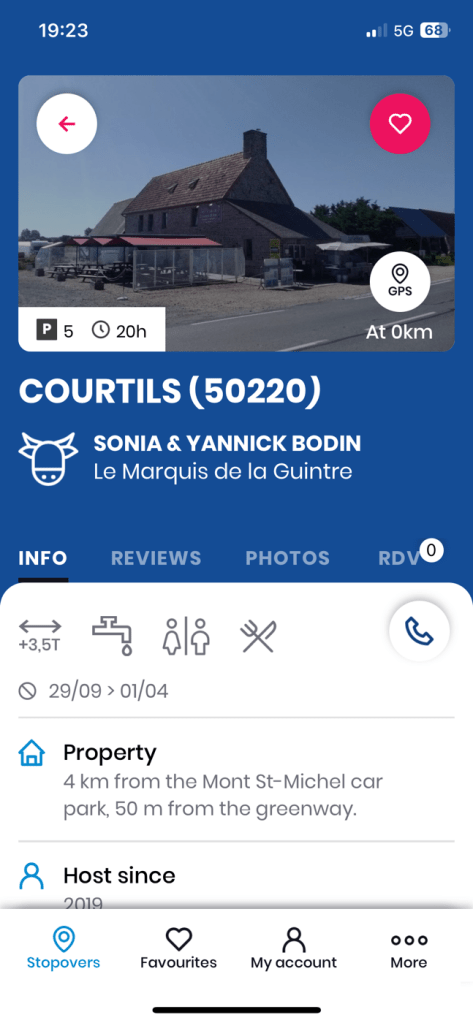 Kollat in en parkering via France Passion, som blev helt perfekt. Satt ute ett tag, men vinden var rätt kylig. Middag på restaurangen, desserten tog vi takeaway