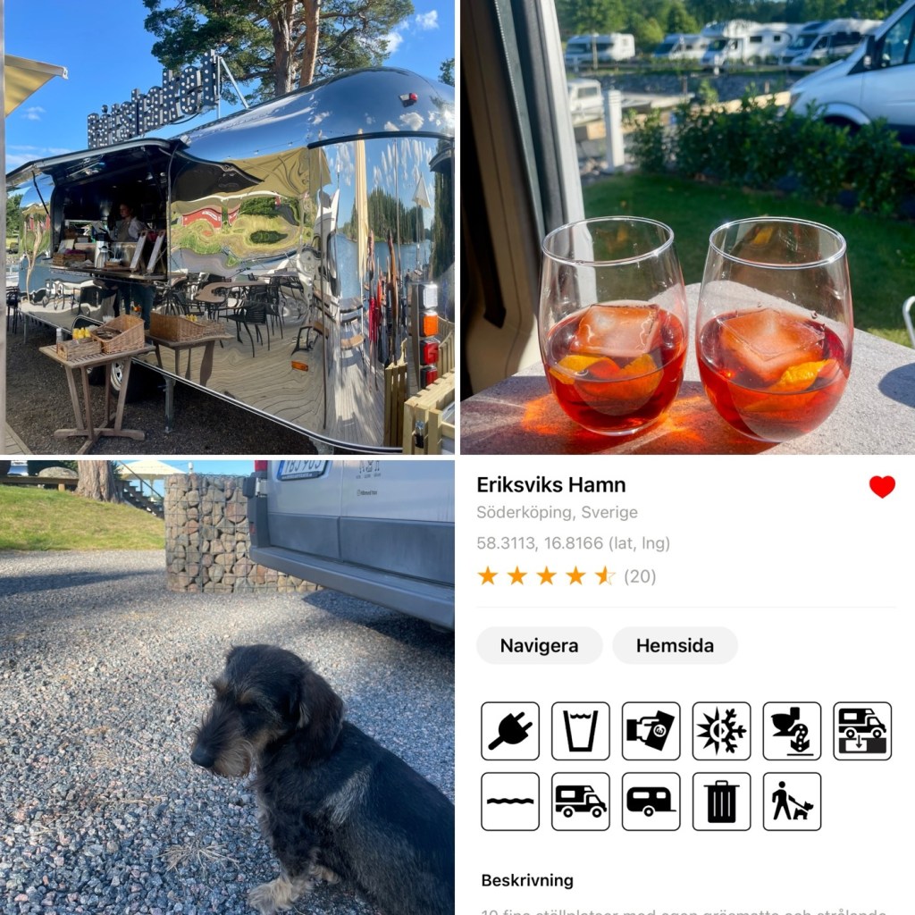 Regnat hela natten. Hade tänkt att stanna här 2 nätter men efter dusch å frukost kör vi vidare mot östkusten. Fåt ett tips på mysig plats nära Valdemarsvik: Eriksviks hamn. En av d finaste välordnade platser vi besökt, blev lätt en favorit.