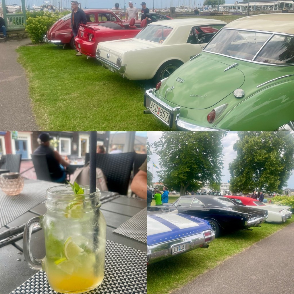 Är ett rejält regnväder på väg in, så tar oss till stan för middag. Hoppades på Lundgrens garage, å vi lyckades få ett bord inne.