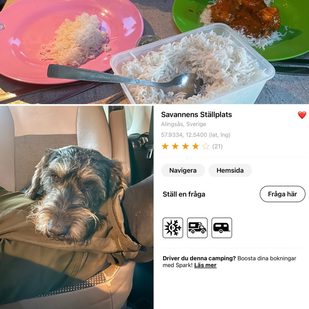 Kom i väg redan vid 16, å drog handbromsen vid 18 på Savannens ställplats i Alingsås. Hänger i plåten ett tag å lägger planen för morgondagen. Tar oss sen ut med G. Lite Indiskt takeaway fick följa med hem.