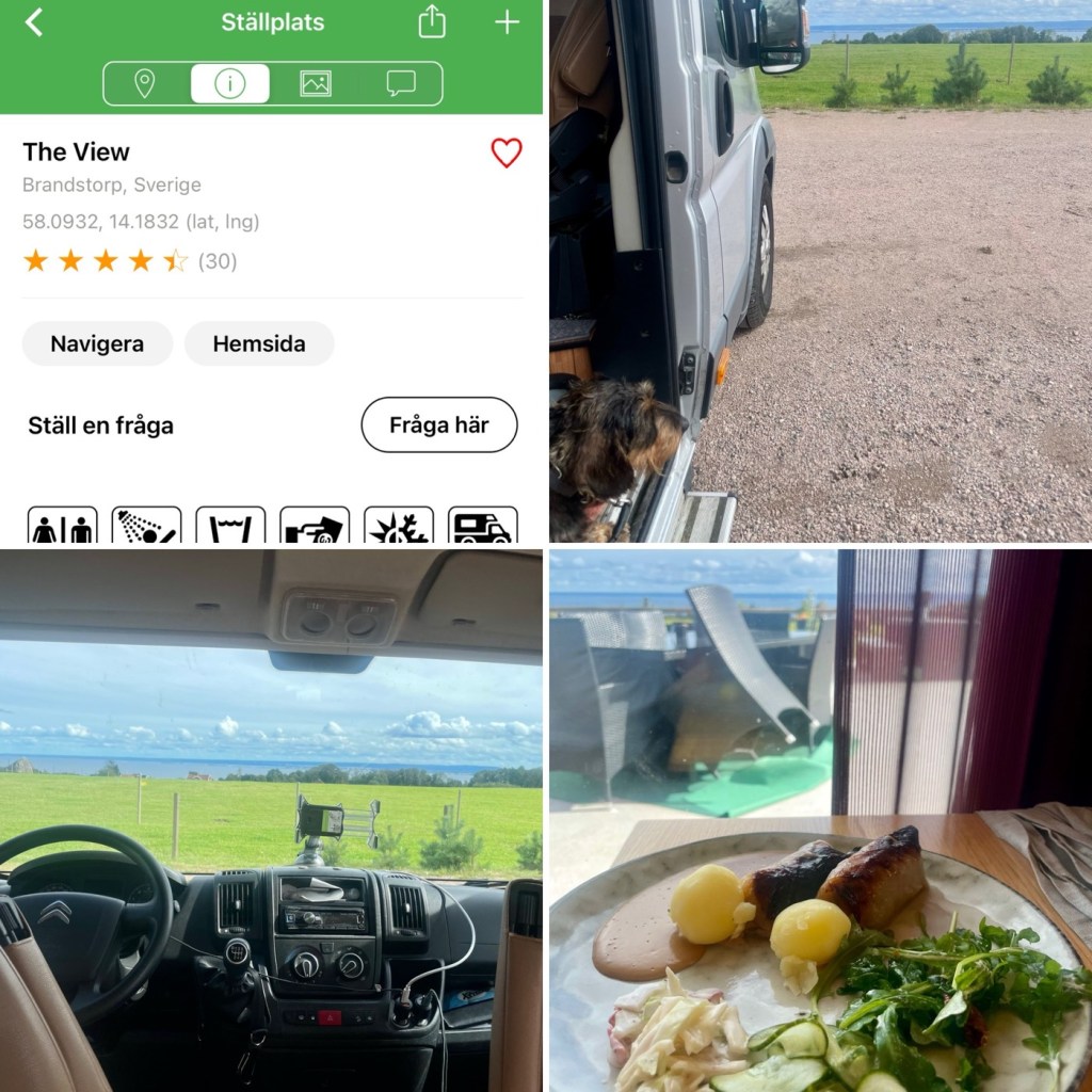 Kör frukost i plåten innan vi kör vidare. Hittat en nyöppnad ställplats i närheten av Jönköping med utsikt över Vättern: The Wiev