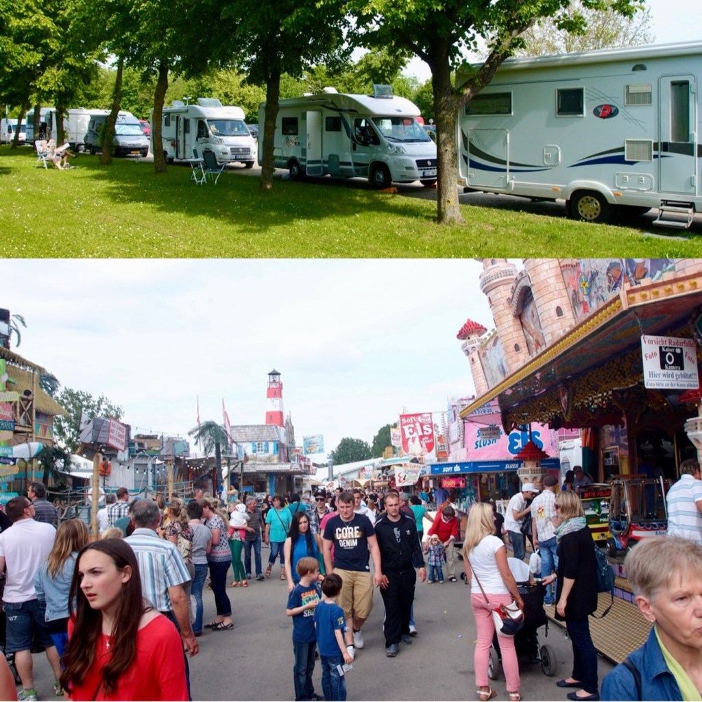 Jämte parkeringen var dagen till ära ett tivoli som vi besökte på kvällen. Jätte mysig och familjär stämning. Mycket lederhosen och dirndl på gammal som ung.