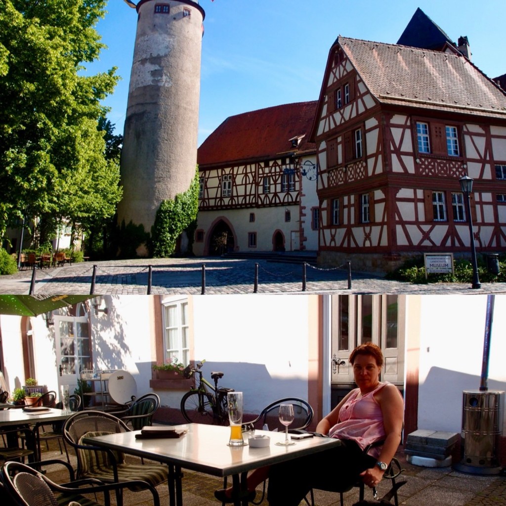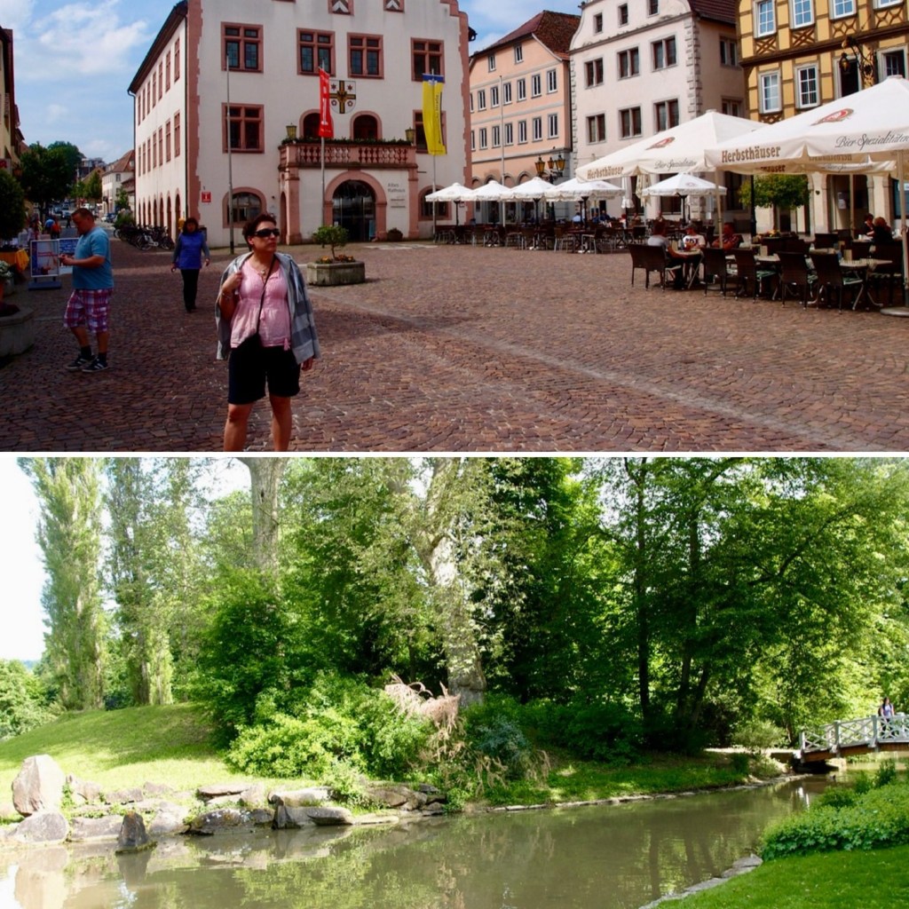 Dagen efter kör vi på RS, parkerar gratis utan för muren vid Tauberbischofsheim. 5 minuters promenad senare är vi innanför murarna. Staden har anor från 1000 talet. Skaffar lite turistkartor över RS, turistar, käkar middag på Kloster restaurangen.