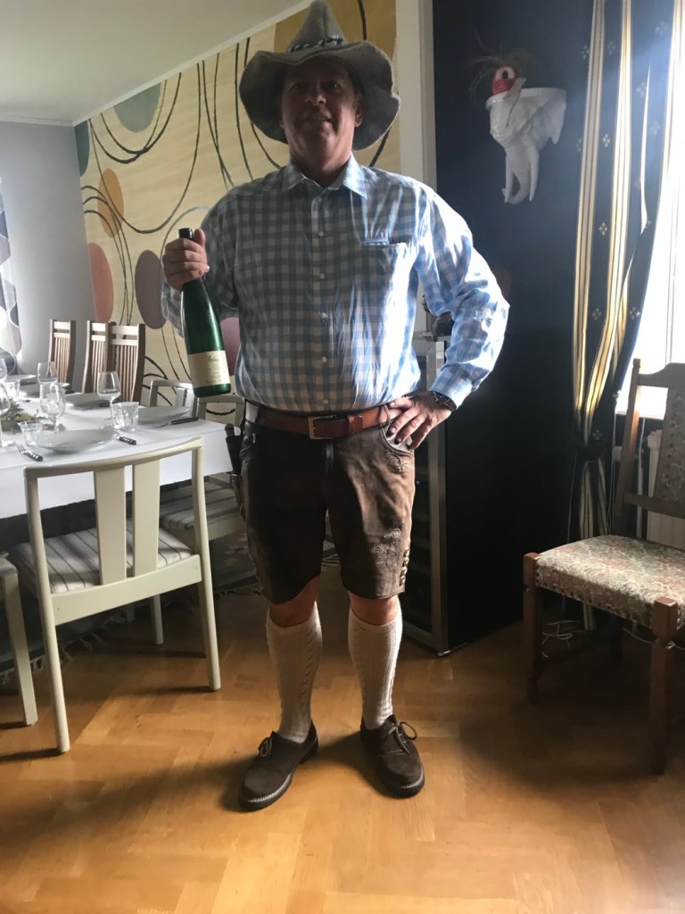 Vid Oberau stannade vi till vid en affär och ekiperade oss med lederhosen, skjorta och skor till H och en överdel till mig.