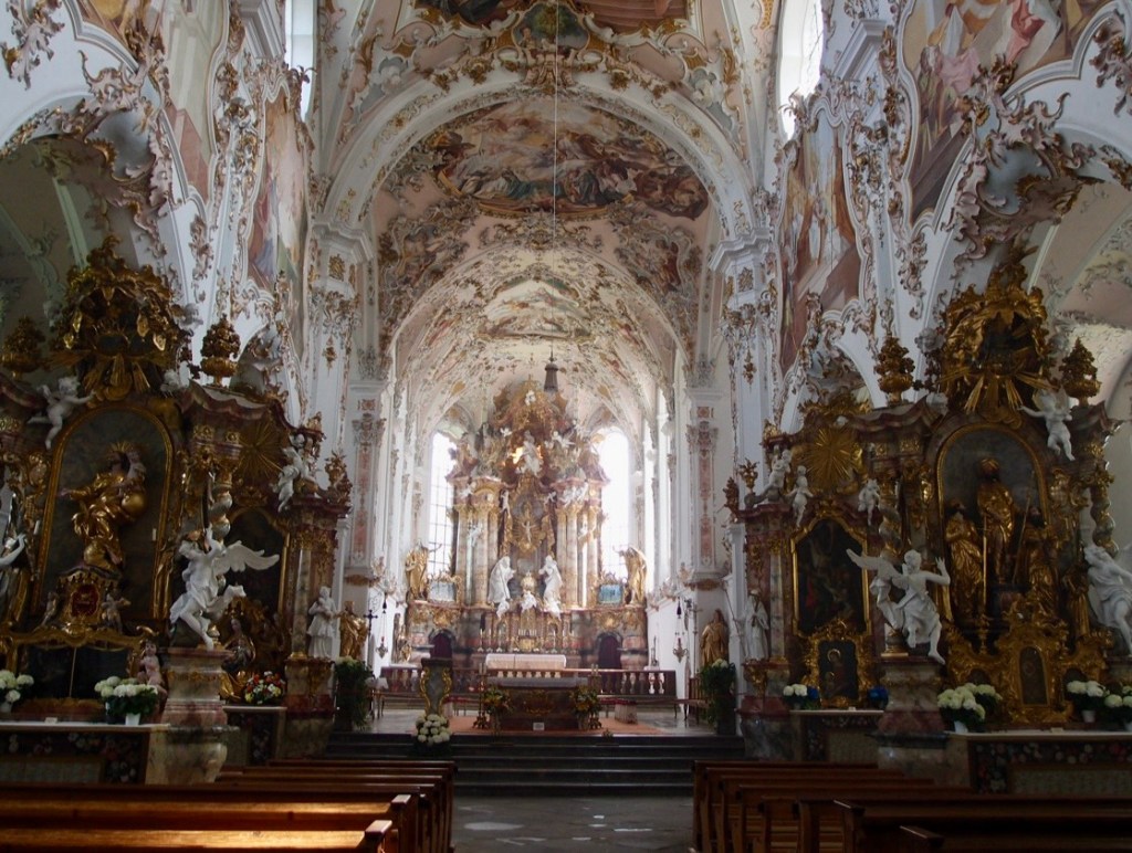 När vi körde vidare, missade vi skyltarna RS, så hamnade på autobahn. Körde av vid Hohenturch och körde alpvägen upp till Rothenburg. Tittade in i klosterkyrkan Mariä Geburt, som nog var den mest pimpade kyrka vi sett! Stort sett, smyckad på minsta detalj.