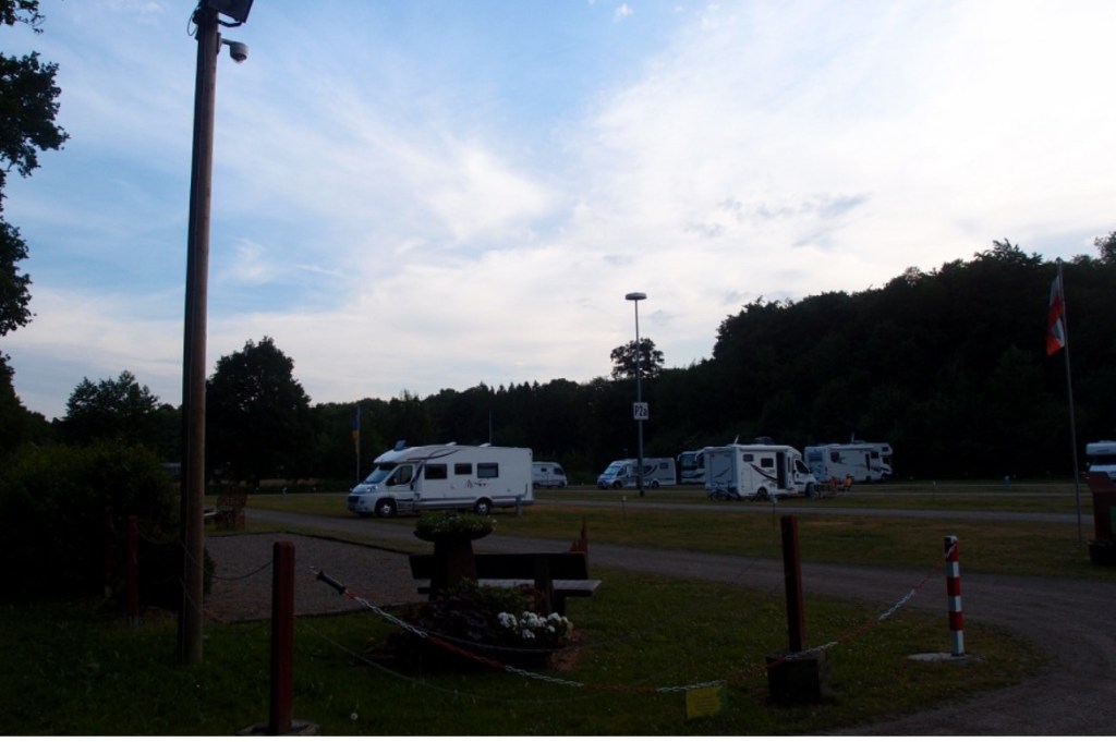 Drar handbromsen på en ställplats vid småbåtshamnen i Emmerich am Rhein som ligger ca 30 min från solpanelsfirman.
