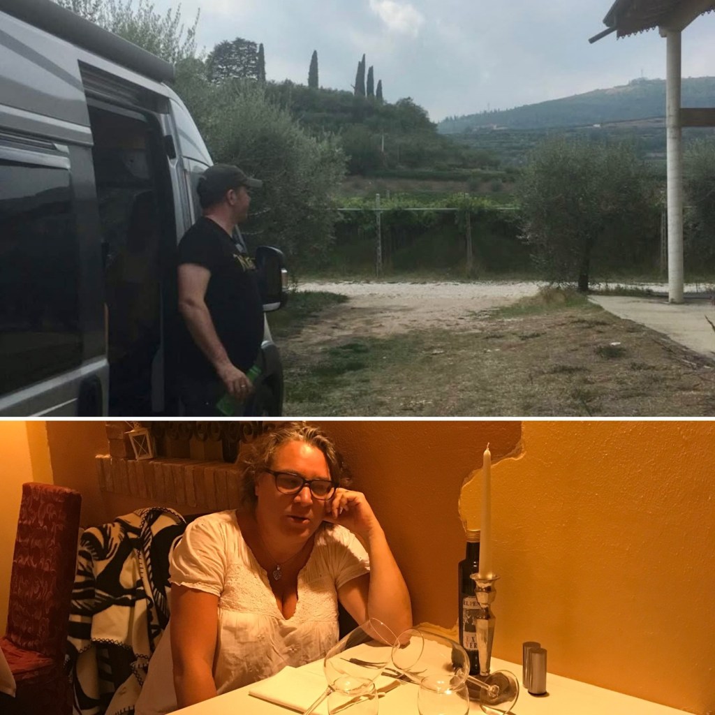 På vingården El Pendola, stod vi lika härligt som sist, mitt vid vinrankorna. Käkade på deras restaurang