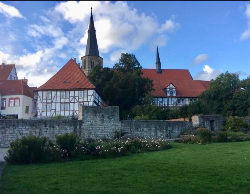 Duderstadt: helt ok ställplats. Trevlig promenadväg upp till centrum, med korsvirkeshus.