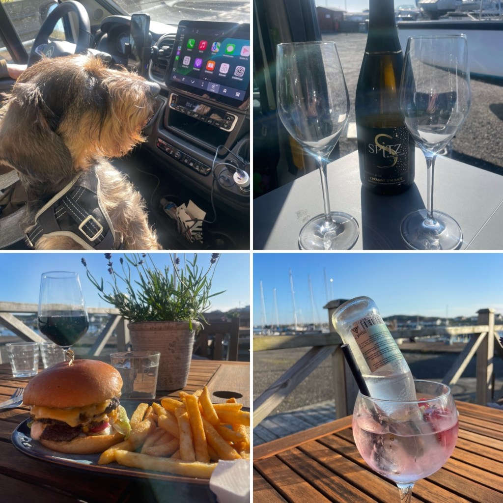 Framme ca 17.30 kniper vi en skaplig plats. Dags för att skåla in säsongen och nya plåten i lite bubbel. Hänger ute en stund innan vi kör middag på Hälsö brygga. Magiskt god Hamburge tallrik. Softar i plåten resten av kvällen, innan vi far hem dagen efter.