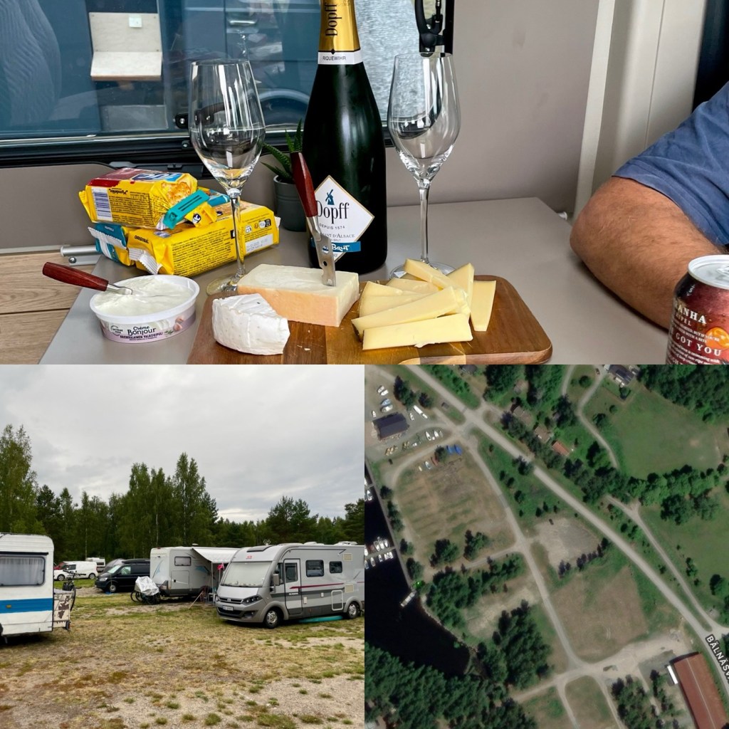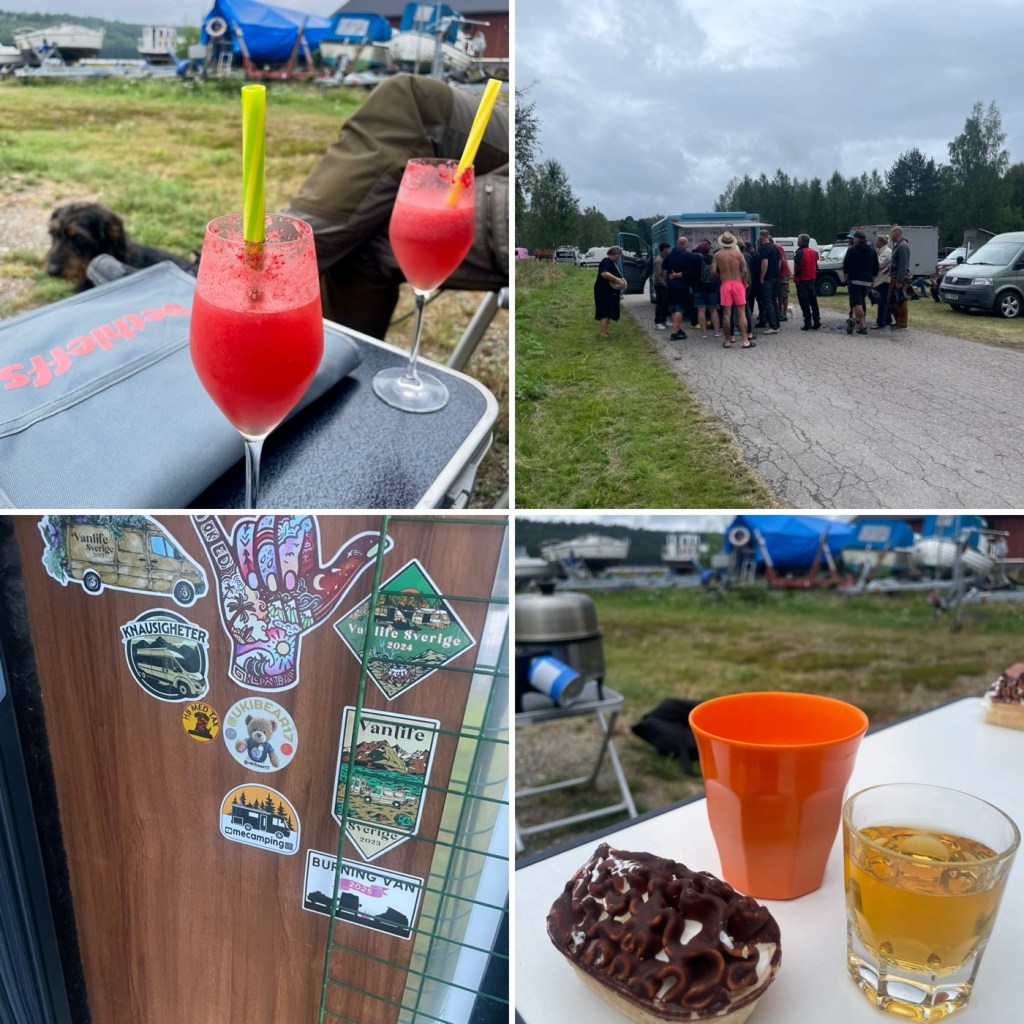 Sedan tog vi oss runt och kikade på fordon – allt från klassiska vans till plåtisar, större husbilar och till och med tält. Vi minglade lite försiktigt, men höll oss mest på vår kant. Middagen skippades, ostbrickan mättade mer än vi trodde, men en fredagsdrink fick vi till. Kvällen var lite stökig, men inget som störde oss särskilt.