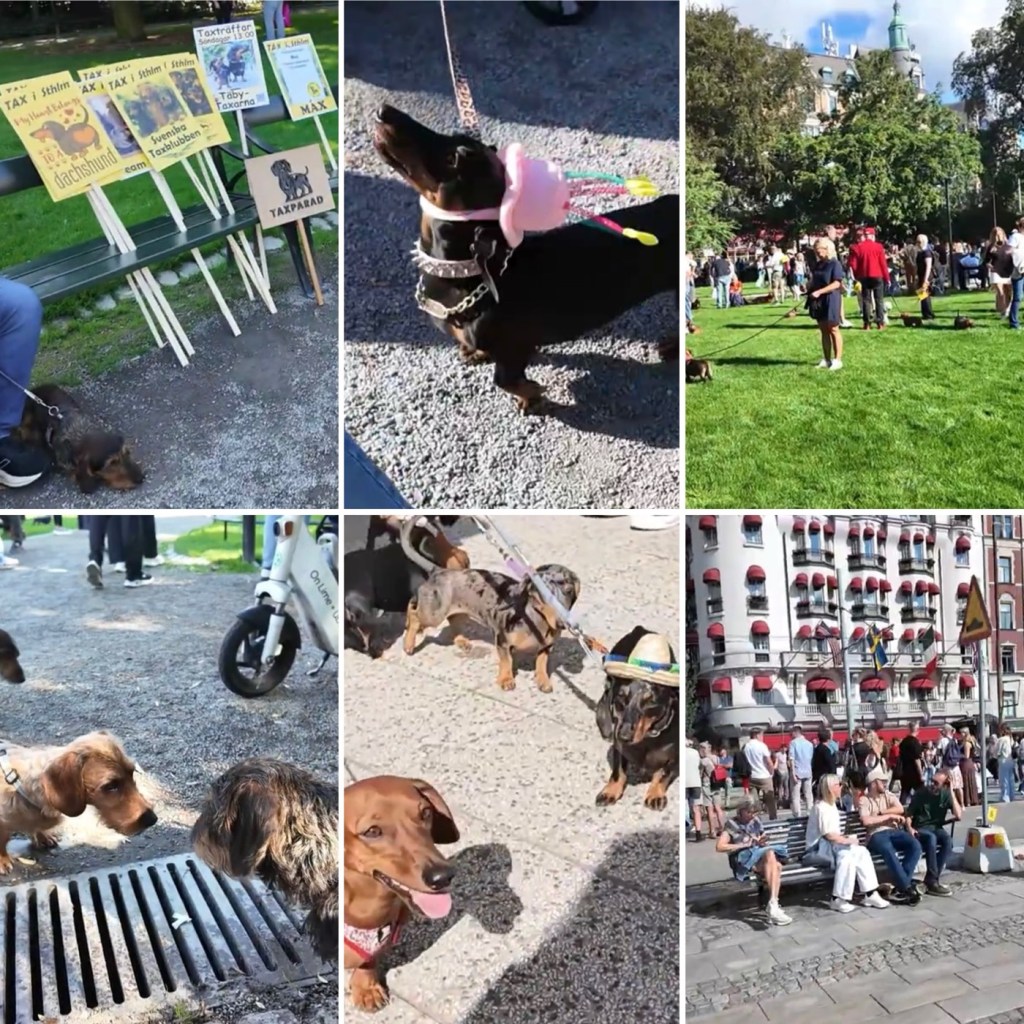 Sen blev det Taxar i alla former och storlekar! Det var ren lycka att se alla taxar samlas inför start – stora, små, långhåriga, strävhåriga och några som till och med var uppklädda för dagen. Jag lämnade Håkan och Glenn en stund för att kunna fånga dem mitt i paraden med kameran. Ett minne för livet!